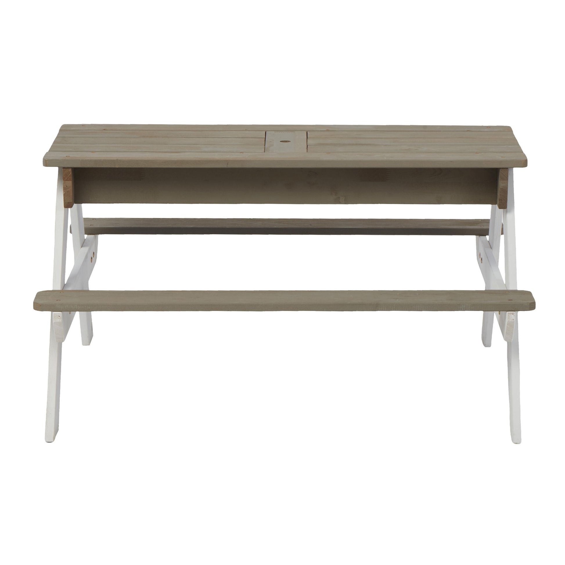Wooden Kids Picnic Table, Sand And Water Table With Umbrella, Activity Table For Outdoor Backyard Patio Play - White / Gray