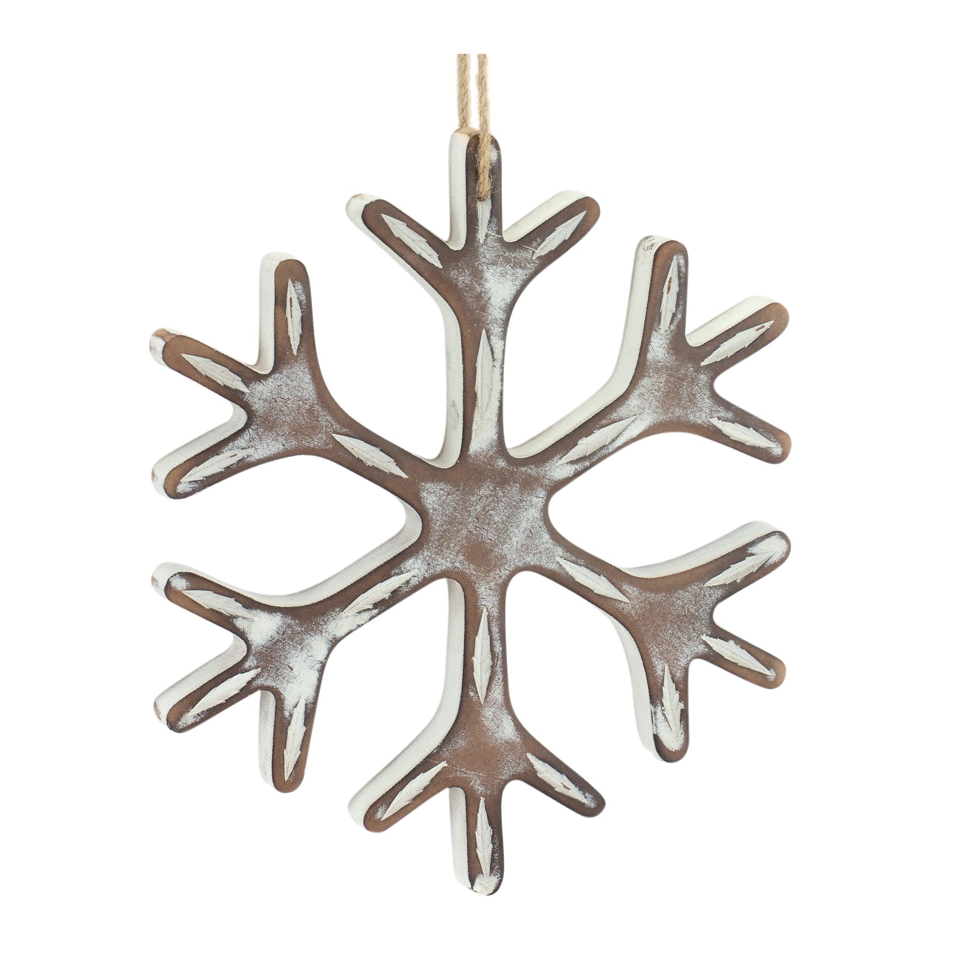 Wooden Snowflake Ornament with White Washed Finish (Set of 12)