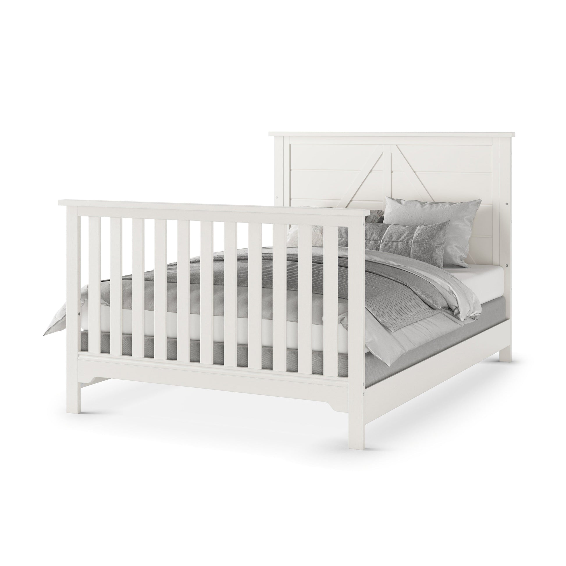 - The Woodland 4-in-1 Convertible Crib transitions effortlessly from a baby crib to a toddler bed, day bed, and full-size bed.