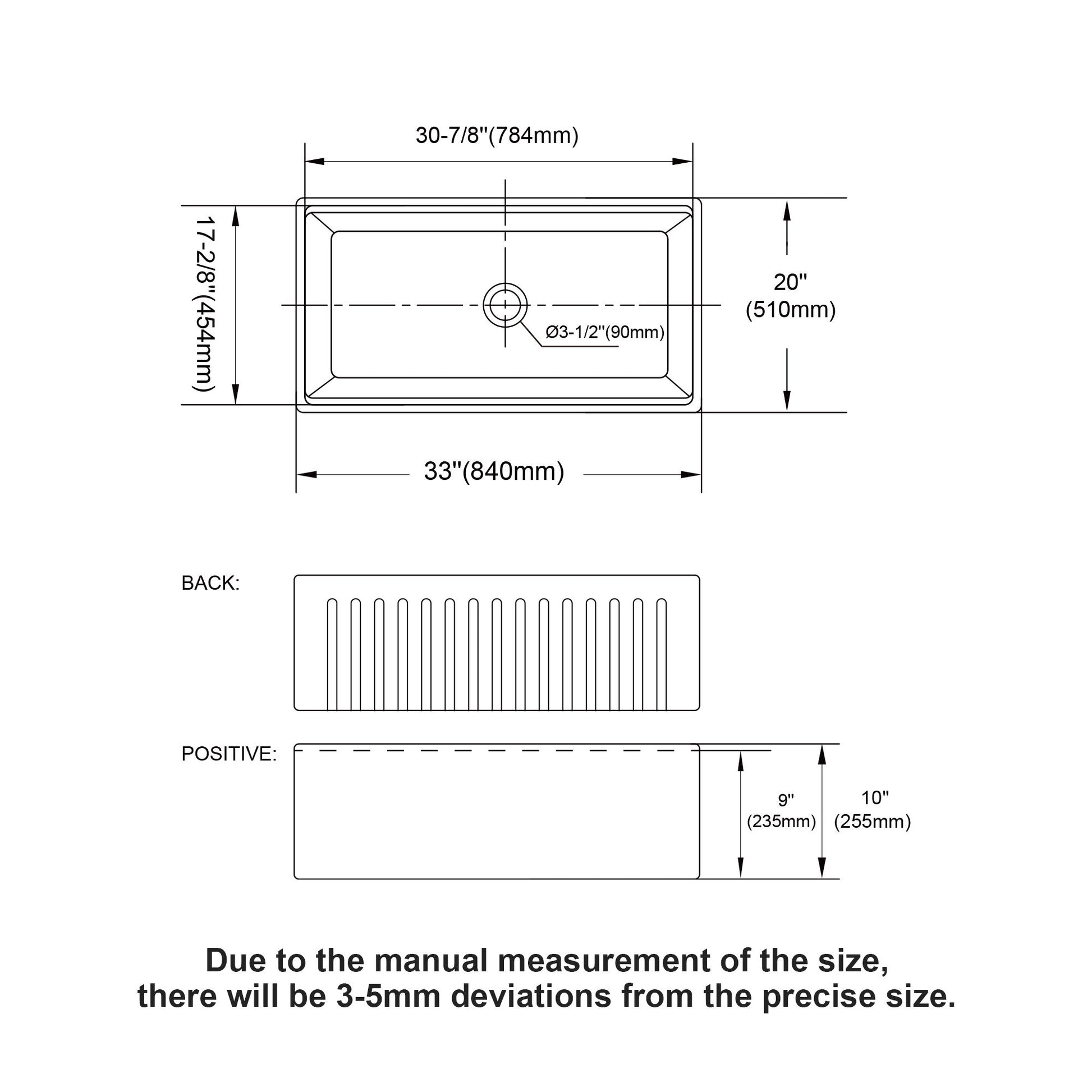 - Stylish Deep White Kitchen Sink Size: Exterior dimensions of 33 x 20 x 10 inches fit standard cabinets with a compatible 3-1/2-inch drain.