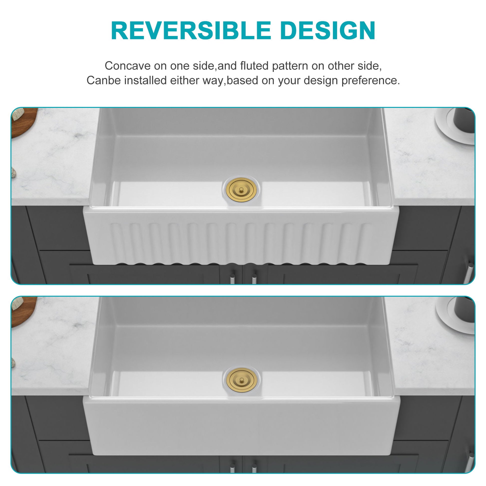 - Reversible Apron Front Design: Offers two aesthetic options-smooth concave or fluted patternfor flexible kitchen styling.