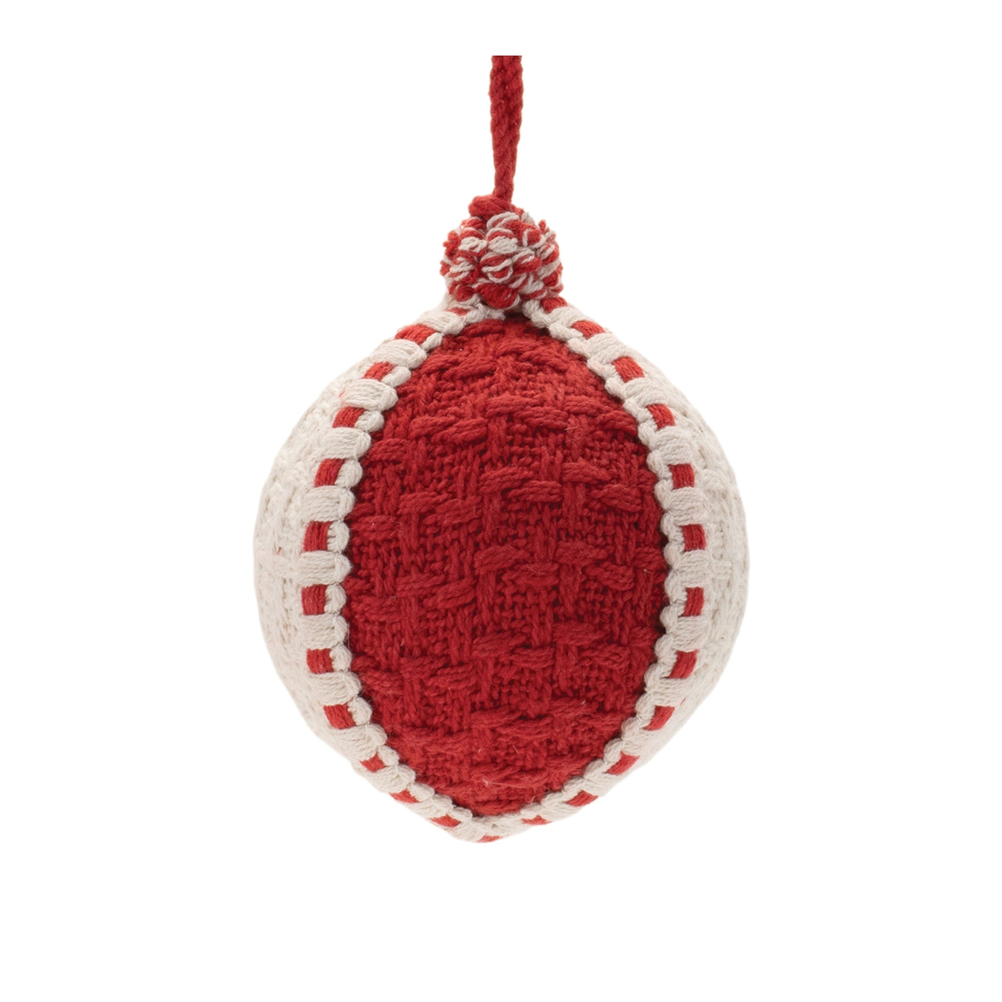 Bring a cozy, sweater-inspired charm to your holiday décor with these Woven Ball Ornaments. Designed in wintry red and white tones, each ornament features a soft fabric finish with a cozy woven design, adding a warmth and texture to your tree or seasonal displays. The rope string hanger enhances the rustic look, making them perfect for hanging on your Christmas tree, wreaths, or garlands. Sold in a set of four with two assorted sizes, these ornaments are a wonderful way to add a touch of holiday cheer to your home or share the warmth with loved ones through gifting.
