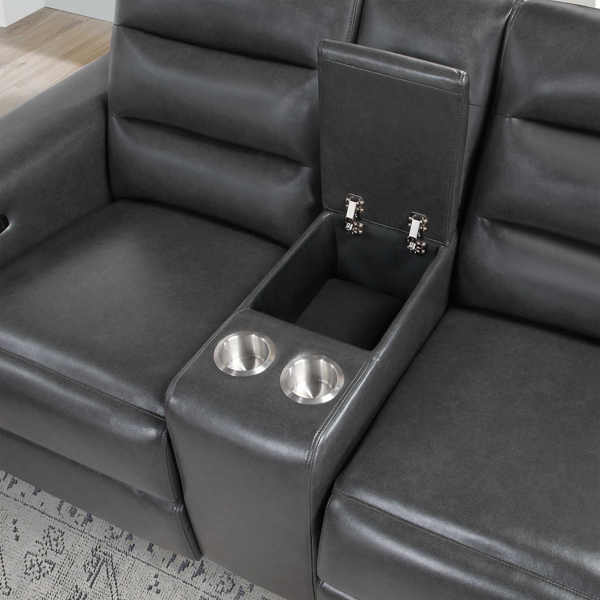 Yamein - Power Reclining Loveseat With Bookcase Arms And LED Lights - Charcoal