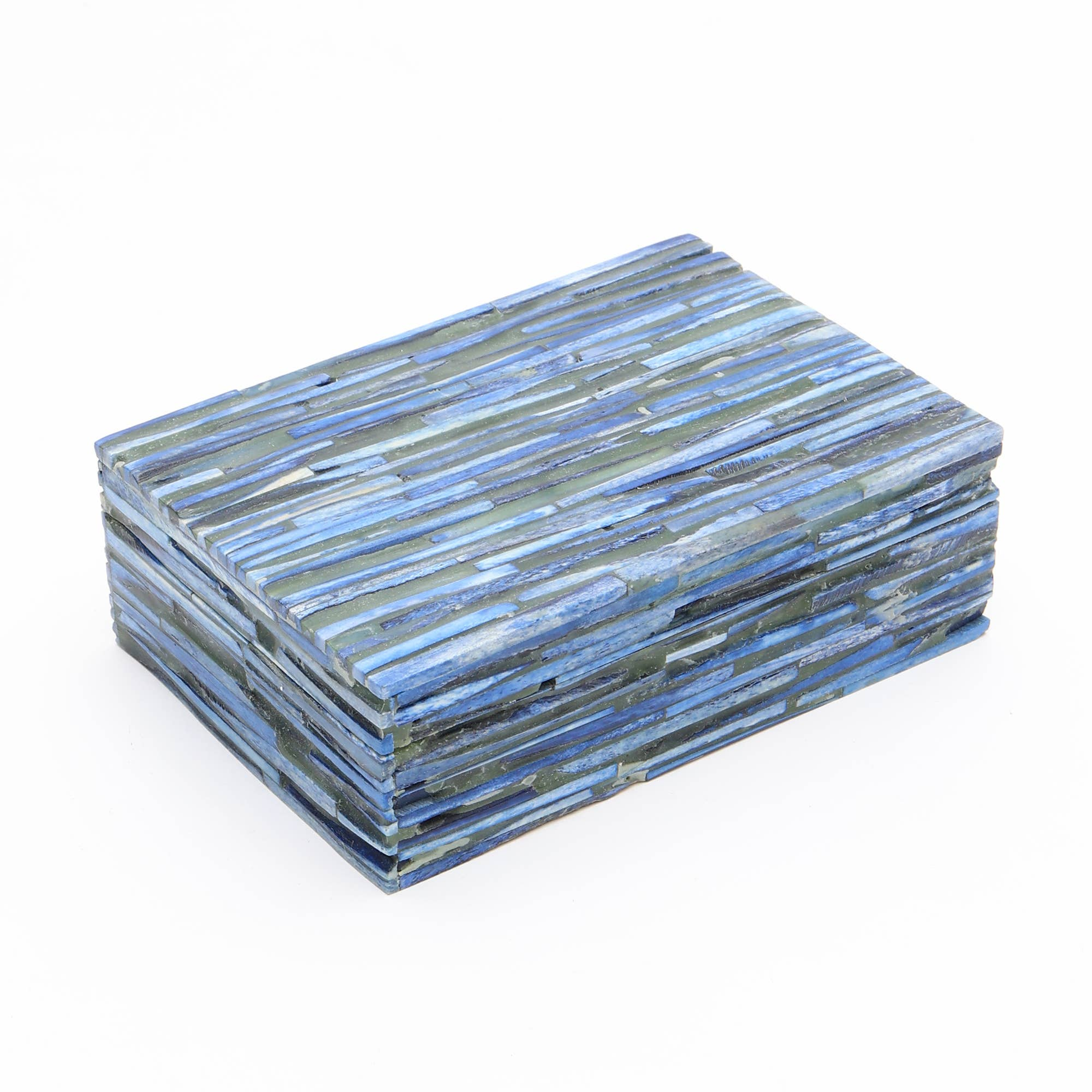 The Yareli Handcrafted Decorative Box is a stylish storage solution perfect for living rooms or bedrooms. Its elegant sky-blue dyed bone inlay design adds a refined coastal charm to any space.