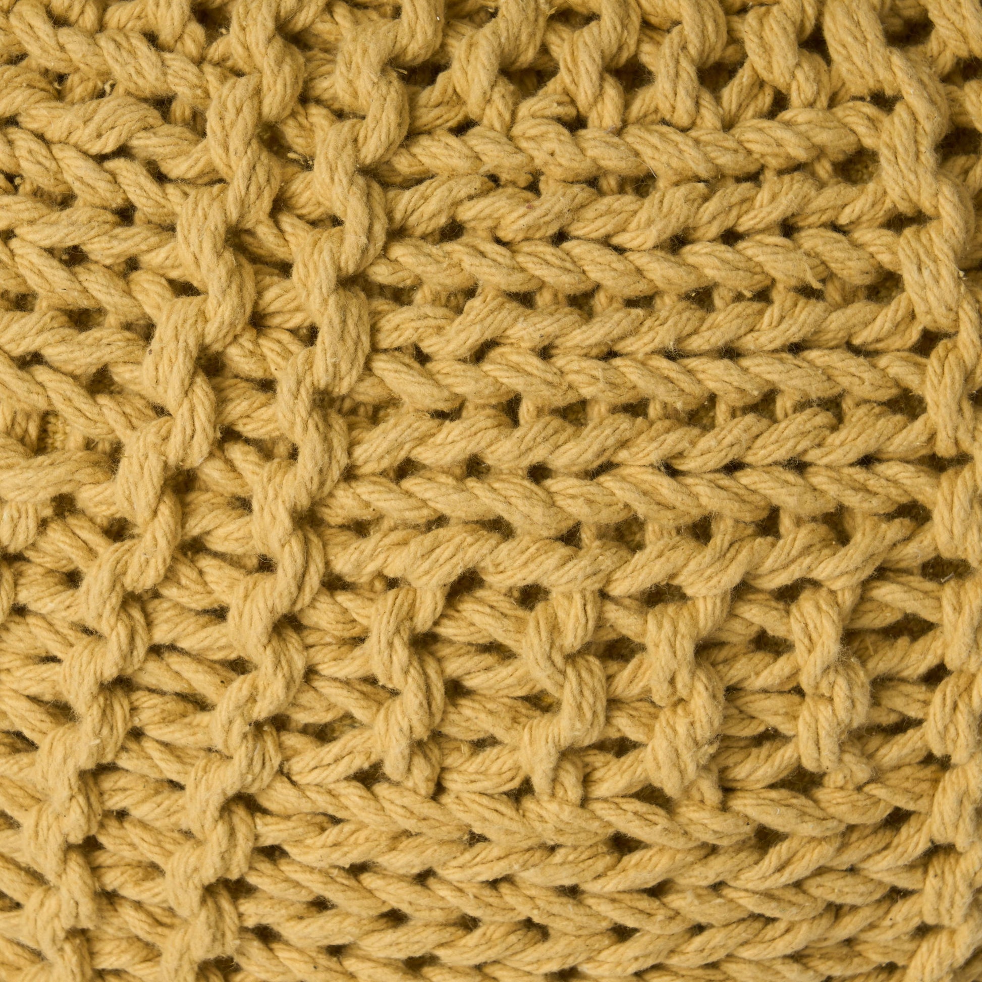 Yuny - Knitted Cotton Round Pouf With Modern Design - Yellow