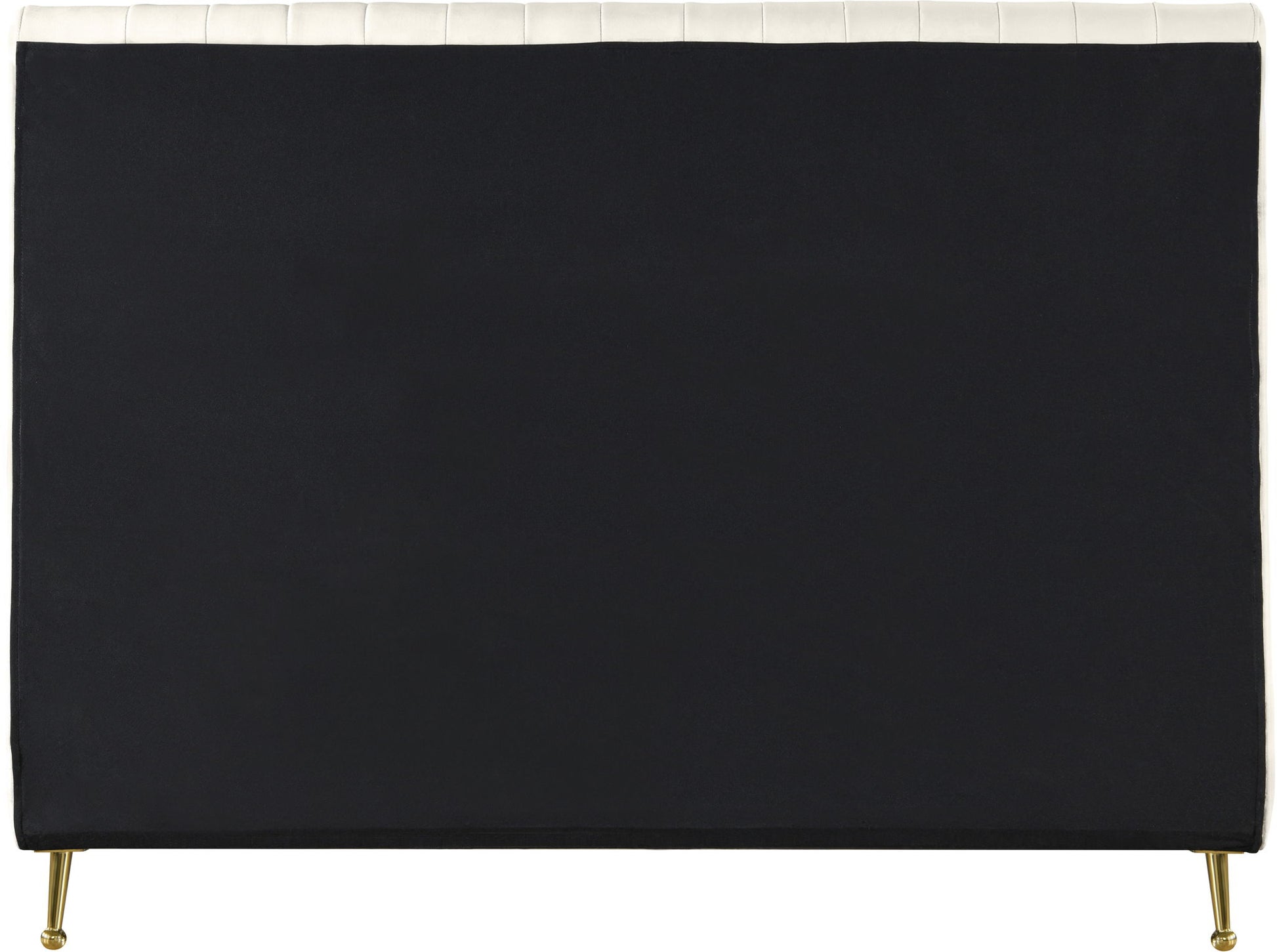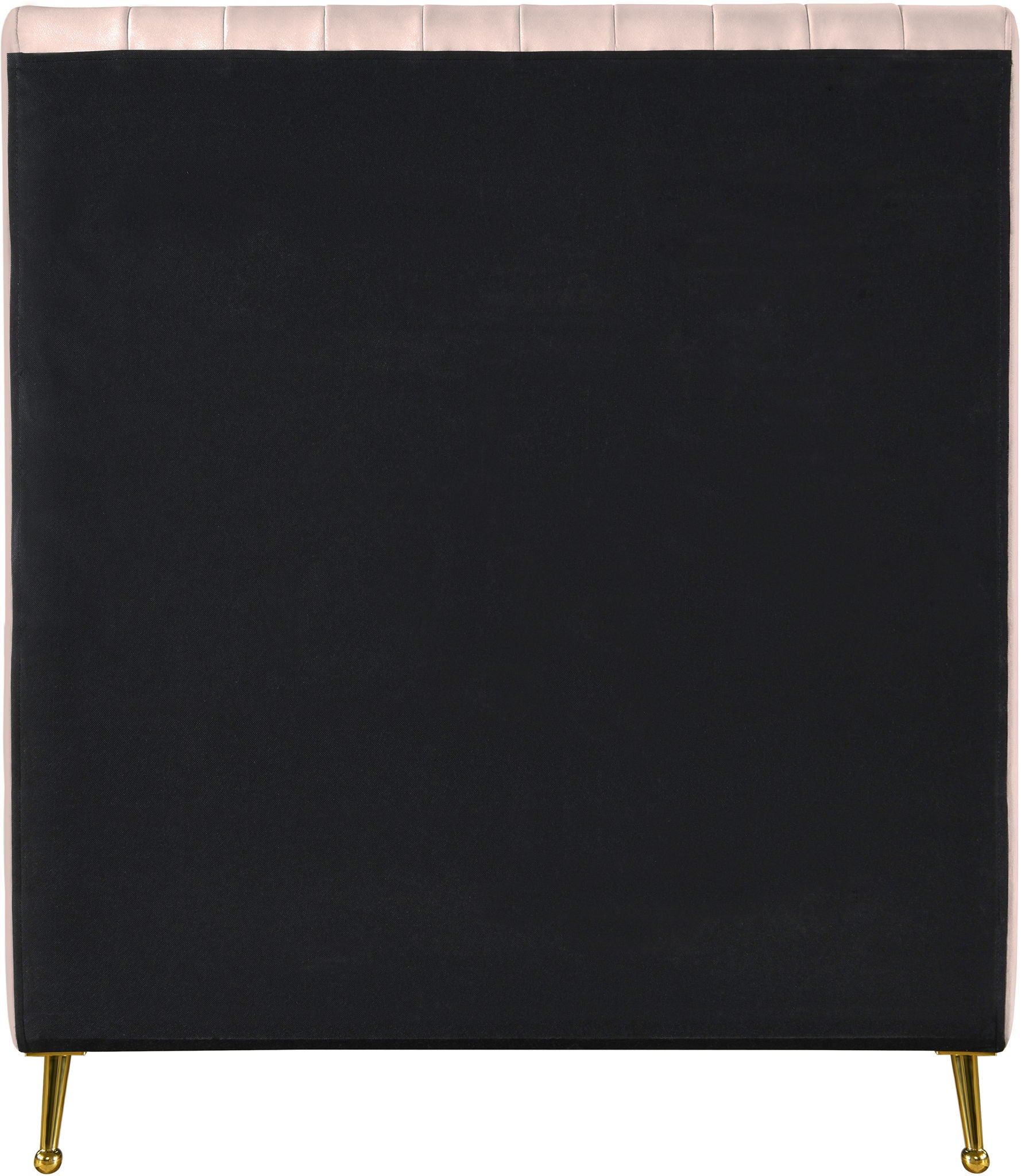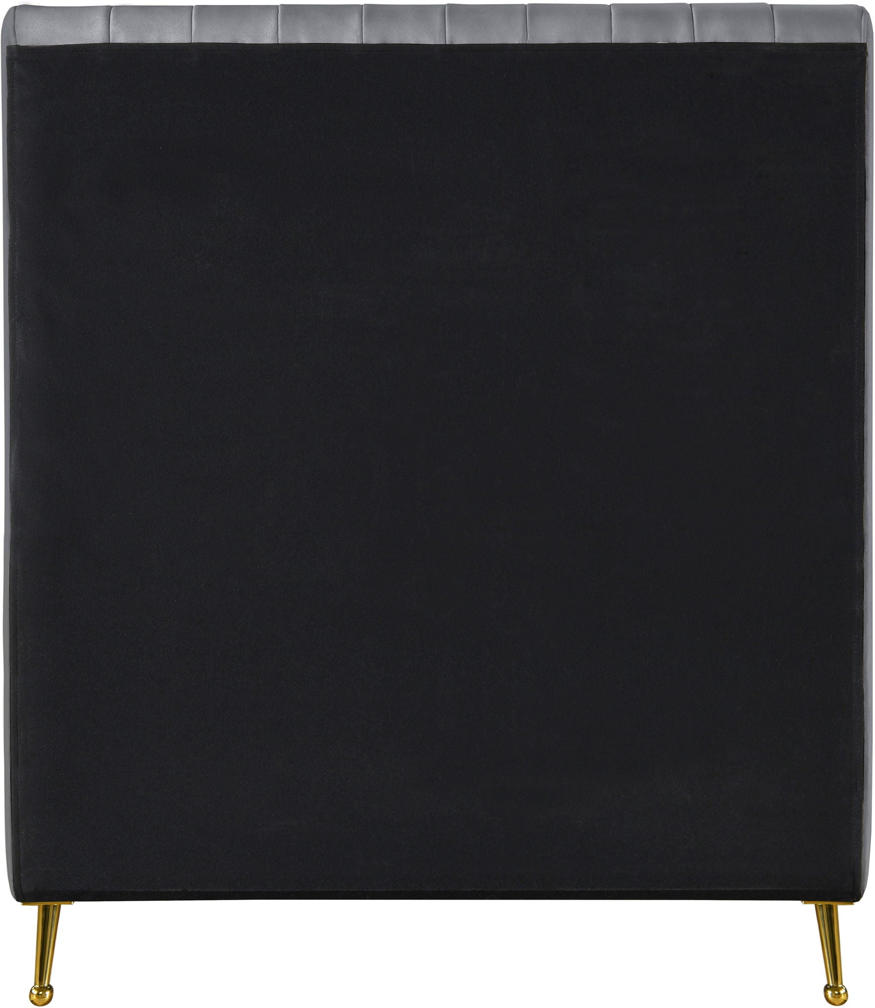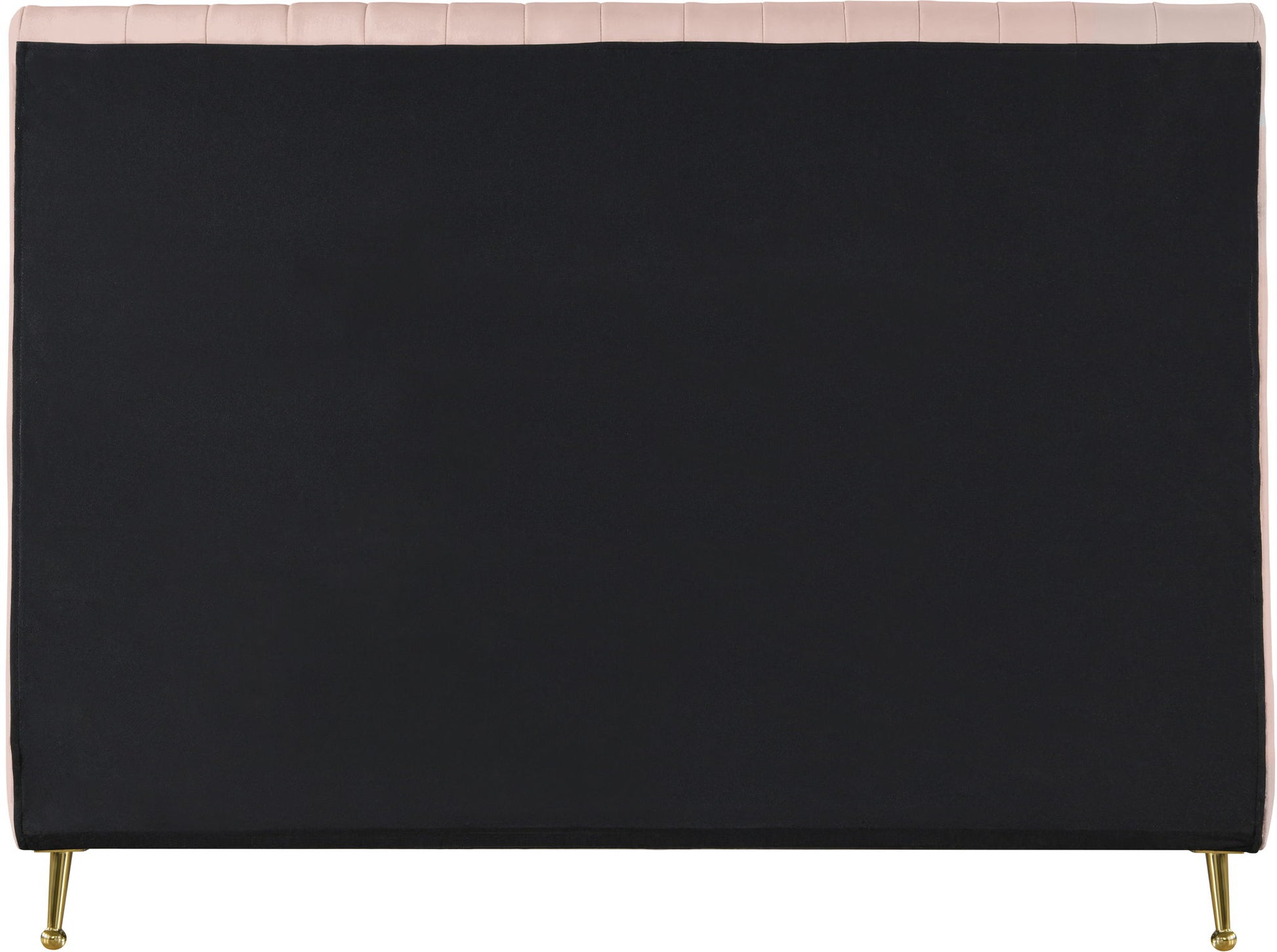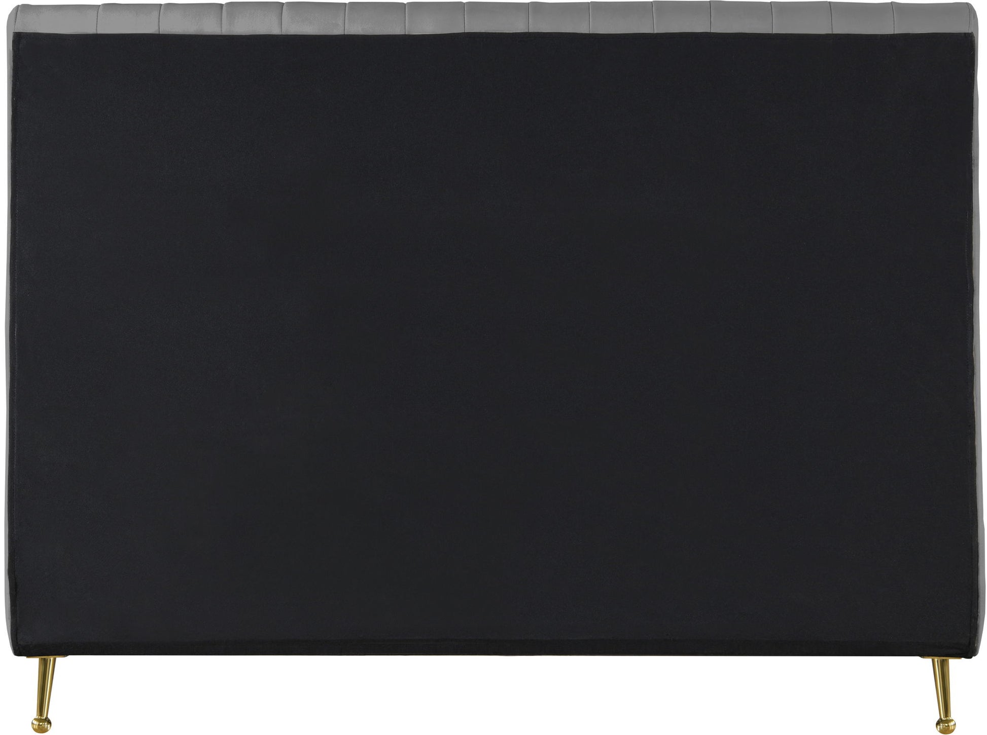 Slip into the lap of luxury with this Zara Bed. This beautiful bed is padded to the max on its headboard and footboard for a look that is nothing short of upscale. The luxe design is amplified by the bed's rich velvet upholstery and its deep detailed channel tufting, which also serves to keep the interior padding aloft, full, and comfortable while you relax or unwind in bed. The bed has legs for a regal touch, and it comes with slats, so it doesn't require a box spring.