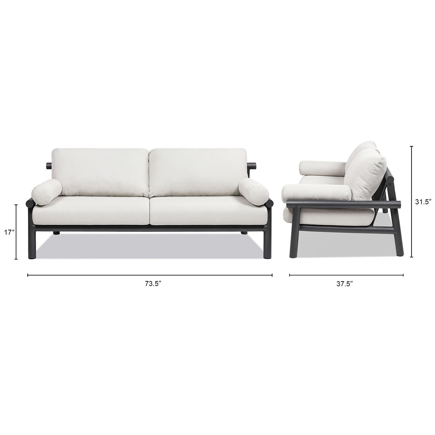 Zara - Dowel Frame Bolster Patio Deep Seating Sofa - Wheat Beige Axroma Olefin