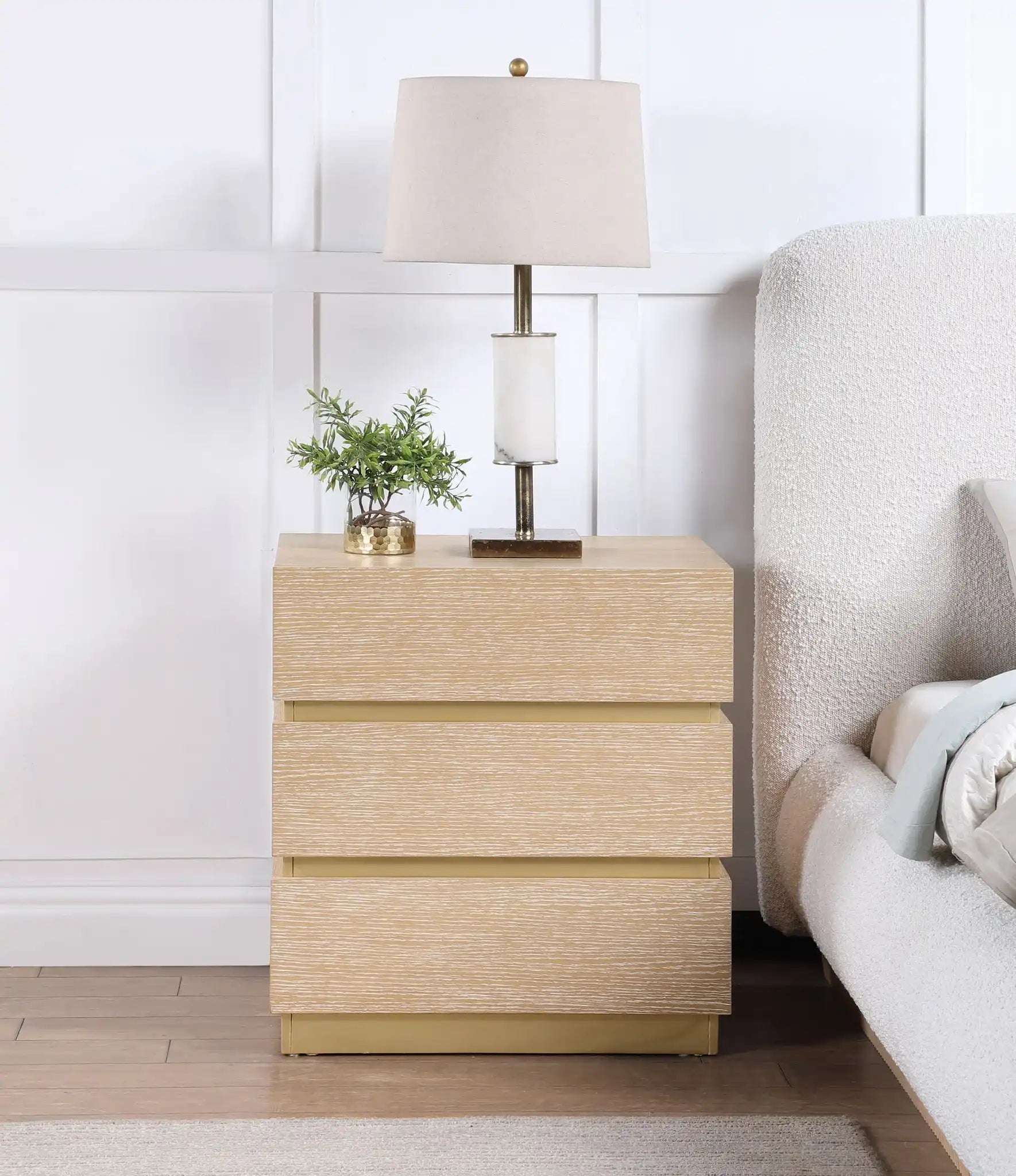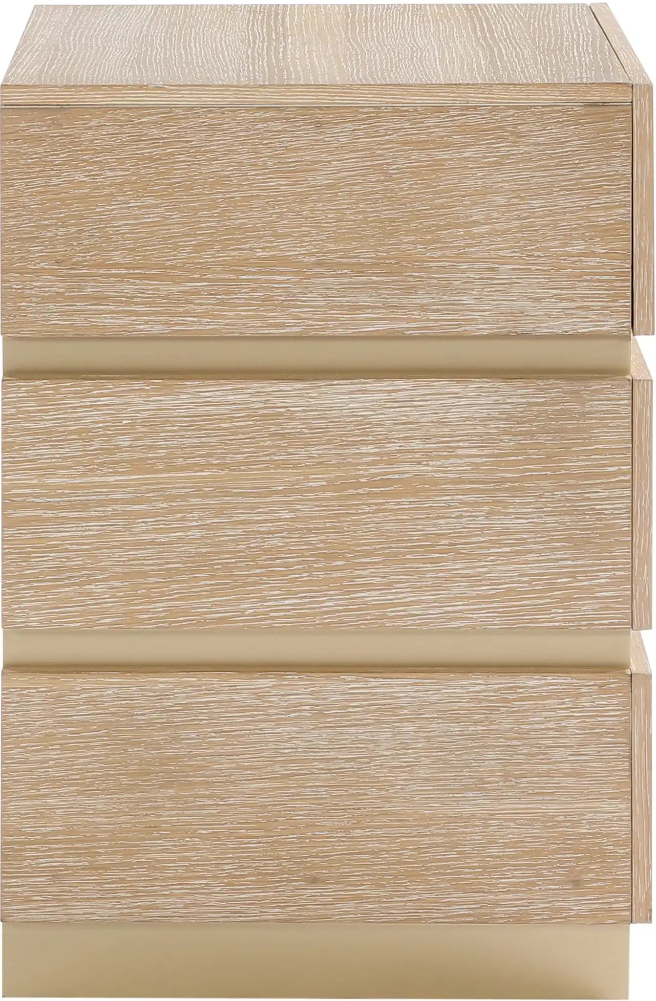 Introduce sophistication to your bedroom with this sleek Zaylan Night Stand. Crafted with oak veneer, it creates an instantly elegant vibe, thanks to its rich finish and brushed brass accents that add a touch of luxury to its contemporary design. With its versatile functionality, this nightstand is a stylish companion beside your bed, offering ample space for essential items like a lamp, reading material, phone, or medication. Elevate your bedroom decor with the Maui Oak Nightstand, blending practicality and style seamlessly for a cozy and organized bedside experience.