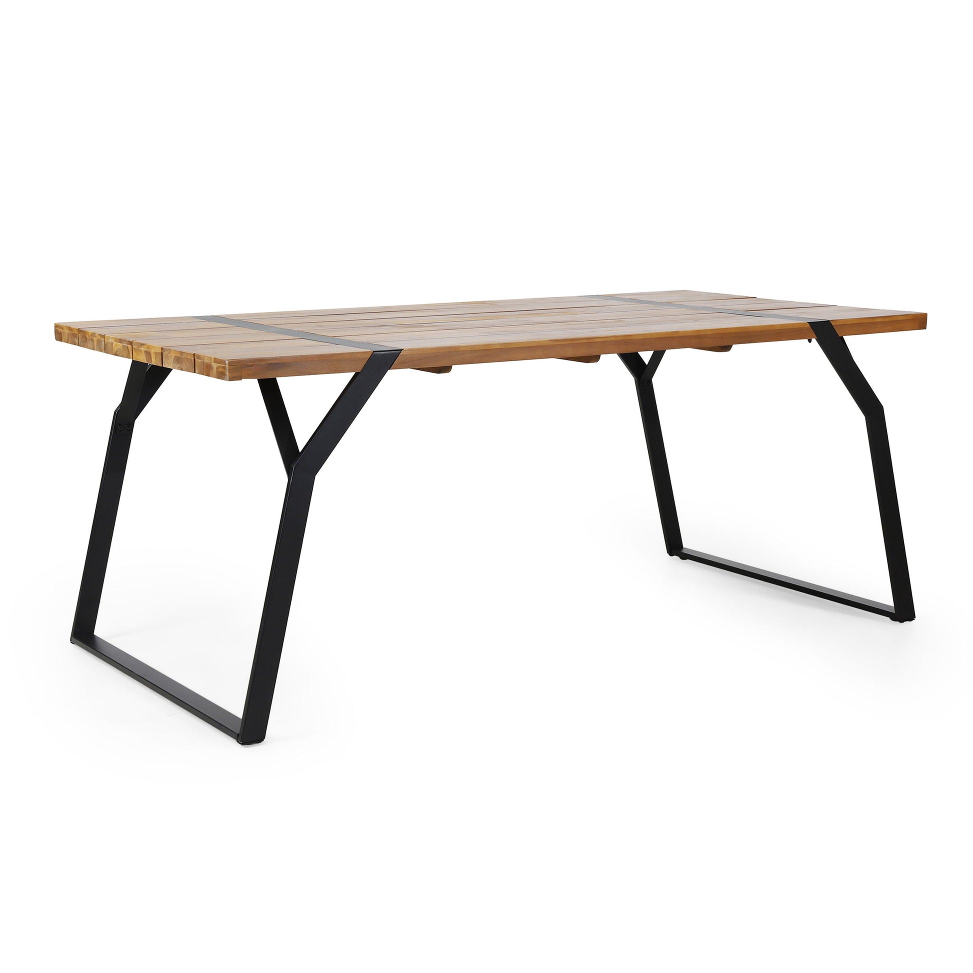 - Weather-Resistant Finish: Teak-finished tabletop and black iron frame resist moisture and wear over time